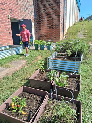 Master Gardener Carlton Mathis began a new program at the center by refreshing the raised beds with the goal of becoming a MGHC project. The children of various ages are being educated in planting, growing, and harvesting the vegetables. They also participate in tasting the harvest with a little ranch dressing on the side! This learning takes place as one of the summer programs at the center.